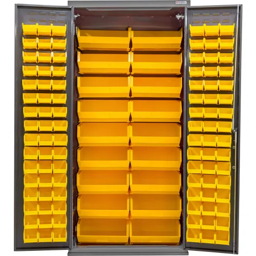 Global Industrial™ E-Locking Configurable Bin Cabinet, 36"W x 24"D x 78"H, 114 Yellow Bins
