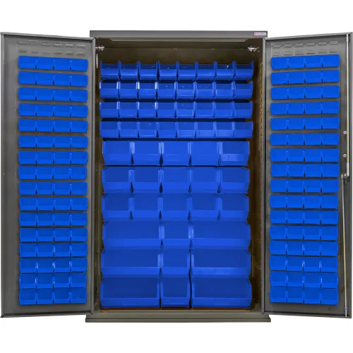 Global Industrial™ E-Locking Configurable Bin Cabinet, 48"W x 24"D x 78"H, 210 Blue Bins
