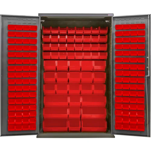 Global Industrial™ E-Locking Configurable Bin Cabinet, 48"W x 24"D x 78"H, 210 Red Bins