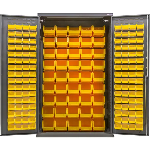 Global Industrial™ E-Locking Configurable Bin Cabinet, 48"W x 24"D x 78"H, 168 Yellow Bins
