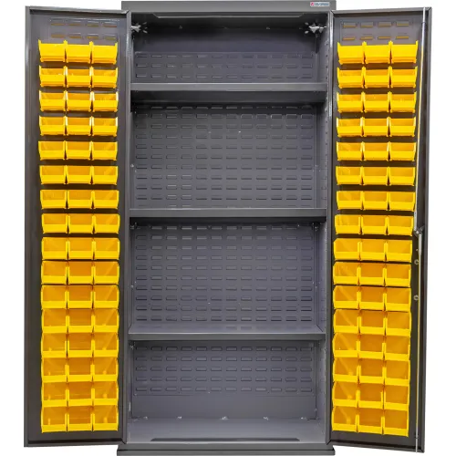 Global Industrial™ Configurable Bin & Shelf Cabinet, 36"W x 24"D x 78"H, 3 Shelves, 96 Yellow Bins