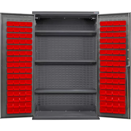 Global Industrial™ Configurable Bin & Shelf Cabinet, 48"W x 24"D x 78"H, 3 Shelves, 120 Red Bins