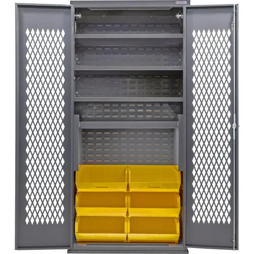 Global Industrial™ Configurable Ventilated Bin Cabinet, 36"Wx24"Dx78"H, 4 Shelves, 6 Yellow Bins