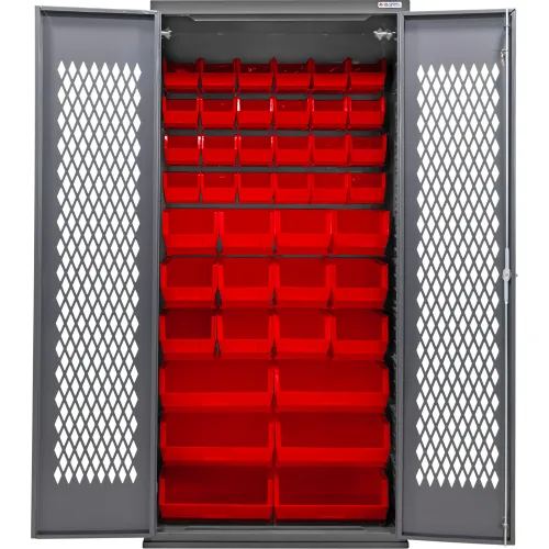 Global Industrial™ Configurable Ventilated Bin Cabinet, 36"W x 24"D x 78"H, 42 Red Bins