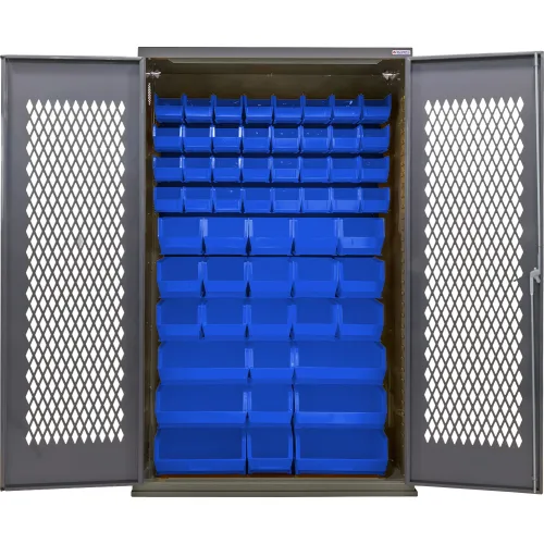 Global Industrial™ Configurable Ventilated Bin Cabinet, 48"W x 24"D x 78"H, 66 Blue Bins