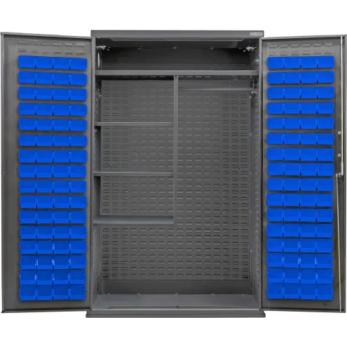 Global Industrial™ E-Locking Configurable Combination Cabinet, 48"x24"x78", 4 Shelves, 120 Blue Bins