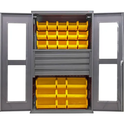 Global Industrial™ Clear-View Configurable Drawer Cabinet, 48"Wx24"Dx78"H, 4 Drawers, 102 YLW Bins