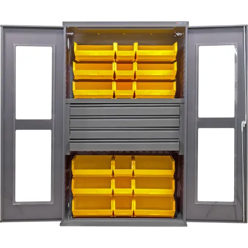 Global Industrial™ Clear-View Configurable Drawer Cabinet, 48"Wx24"Dx78"H, 4 Drawers, 24 Yellow Bins