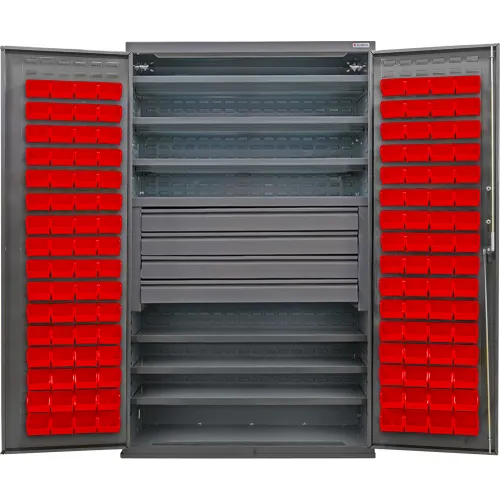 Global Industrial™ E-Locking Configurable Bin Cabinet, 48x24x78, 6 Shelves, 4 Drawers, 120 Red Bins