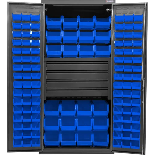 Global Industrial™ Configurable Drawer Cabinet, 36"W x 24"D x 78"H, 4 Drawers, 120 Blue Bins