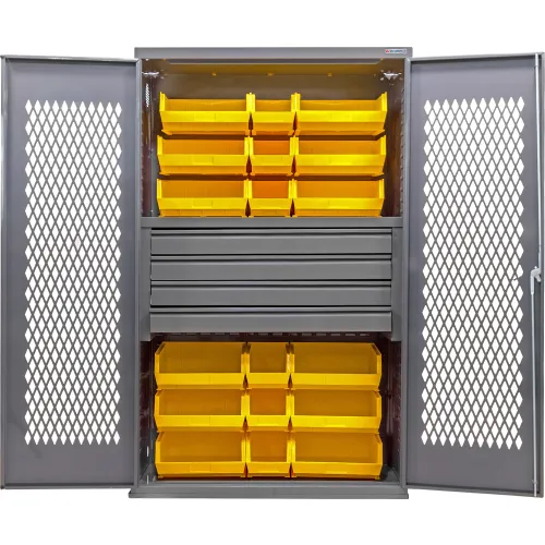 Global Industrial™ Configurable Ventilated Drawer Cabinet, 48"Wx24"Dx78"H, 4 Drawers, 24 Yellow Bins