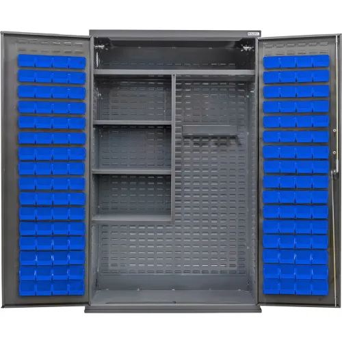 Global Industrial™ E-Locking Configurable Janitorial Charging Cabinet, 48"Wx24"Dx78"H, 120 Blue Bins