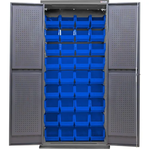 Global Industrial™ E-Locking Configurable Pegboard Cabinet, 36"W x 24"D x 78"H, 36 Blue Bins