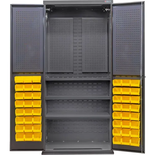 Global Industrial™ E-Locking Configurable Pegboard Cabinet, 36"Wx24"Dx78"H, 3 Shelves, 48 YLW Bins