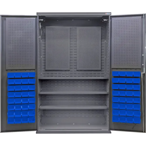 Global Industrial™ Configurable Pegboard Cabinet, 48"W x 24"D x 78"H, 3 Shelves, 72 Blue Bins
