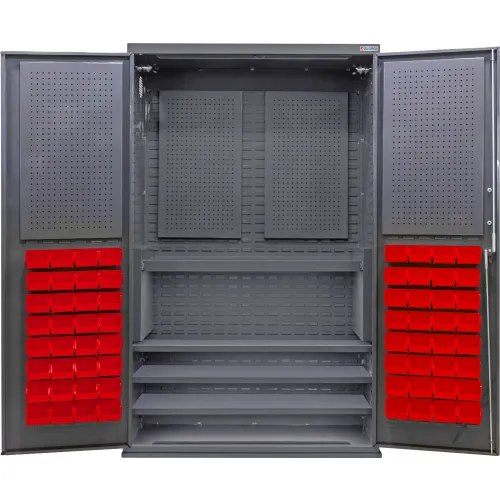 Global Industrial™ Configurable Pegboard Cabinet, 48"W x 24"D x 78"H, 4 Shelves, 72 Red Bins