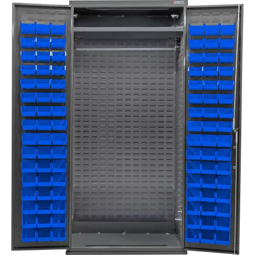 Global Industrial™ E-Locking Configurable Wardrobe Cabinet, 36"Wx24"Dx78"H, 96 Blue Bins