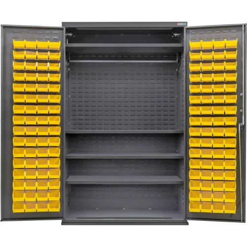 Global Industrial™ Configurable Wardrobe Cabinet, 48"W x 24"D x 78"H, 4 Shelves, 120 Yellow Bins