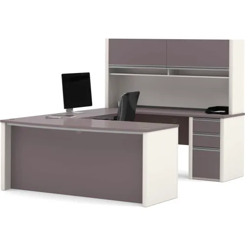 Bestar® U Desk with Hutch & Pedestal - 71" - Slate & Sandstone - Connexion Series