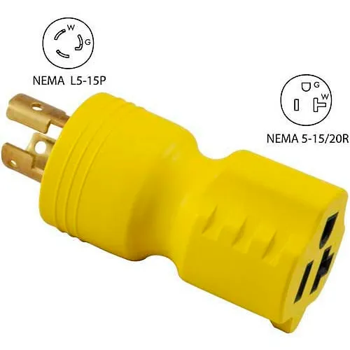 Conntek 30128, 15 to 15/20-Amp Locking Adapter with NEMA L5-15P to 5-15/20R, Yellow