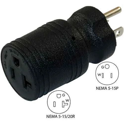 Conntek 30129 15 to 15/20-Amp Straight Blade Adapter with NEMA 5-15P to 5-15/20R, Black