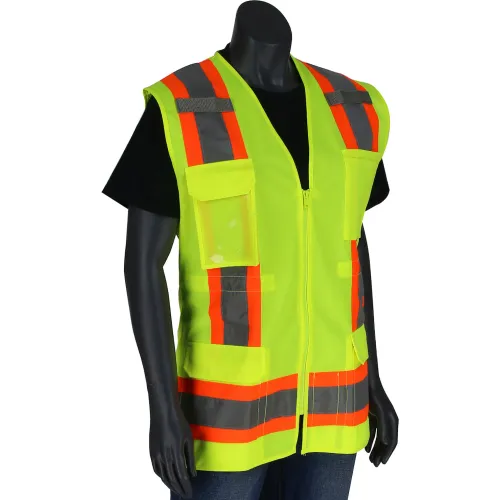 Pip® Contoured Surveyors Vest w/ Solid Front & Mesh Back, Class 2, M, Hi-Vis Yellow