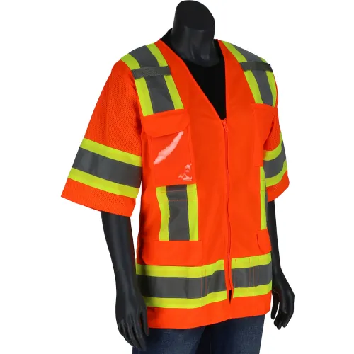Pip® Contoured Surveyors Vest w/ Solid Front & Mesh Back, Class 3, M, Hi-Vis Orange