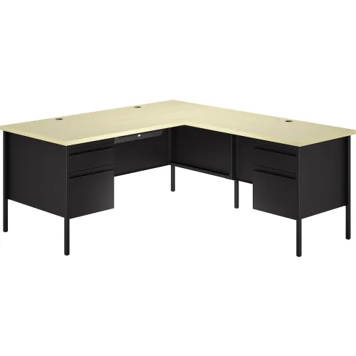 Interion Corner Office Desk w/ Right Hand Return, 72"W x 66"D x 29-1/2"H, Maple Top with Black Frame