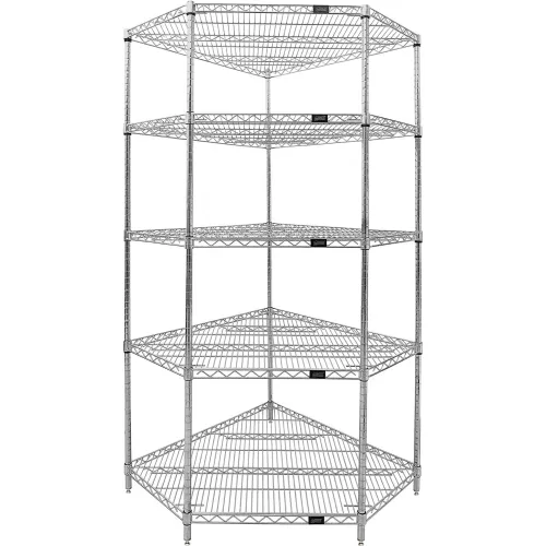 Quantum® 5 Shelf, Chrome Corner Wire Shelving Unit, 36"W x 18"D x 74"H