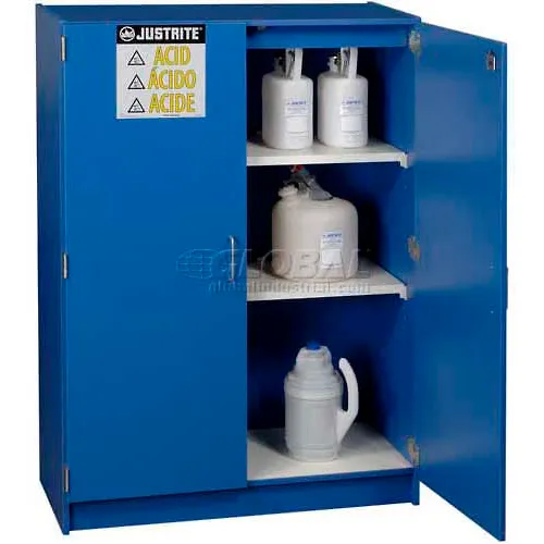 Justrite 49x2-1/2 Ltr. Bottle Cap., Acid Cabinet, Manual Close, 2 Door, 42"W x 17-7/8"D x 60"H, Blue