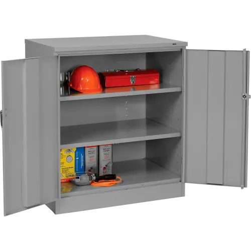 Tennsco® Counter Height Industrial Storage Cabinet, 36"W x 24"D x 42"H, Unassembled, Med. Gray