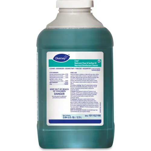 Diversey Crew Restroom Floor SC Non-Acid Disinfectant Cleaner, Fresh, 2.5 L Bottle, 2/Case
