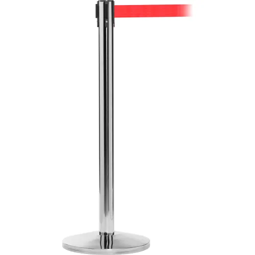 Global Industrial Retractable Belt Barrier, 40" Stainless Steel Post, 10' Red Belt - Pkg Qty 2
