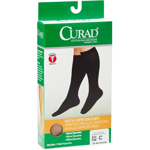 Medline Curad Compression Hosiery w/ 30-40 mmHg, Knee High, Large, Size C, Regular, Tan