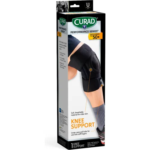 Medline CURAD Senior 50+ Series Knee Support , Spiral Stabilizers, Reversible, Blk, Universal, 4 Pk