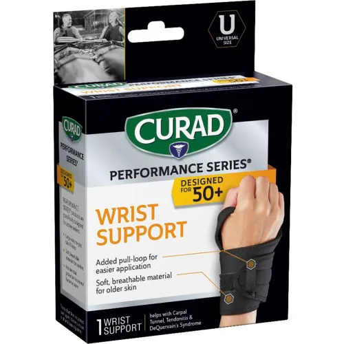 Medline CURAD Wraparound Wrist Support w/ Microban, Black, Universal, 4 Pack