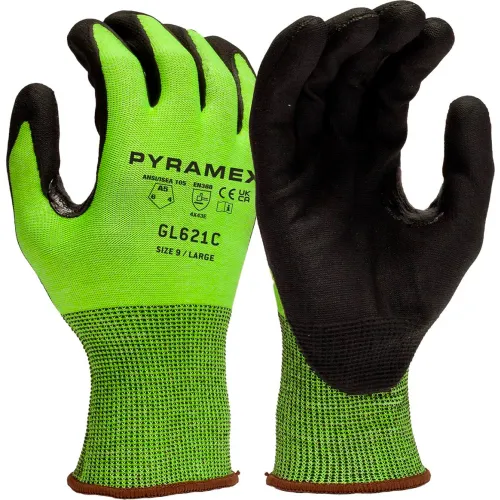 Pyramex® Cut Resistant Gloves, Micro Foam Nitrile Coated, ANSI A5, M, Hi-Vis Lime - Pkg Qty 12