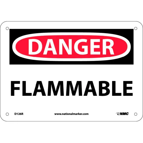 NMC D126R OSHA Sign, Danger Flammable, 7" X 10", White/Red/Black
