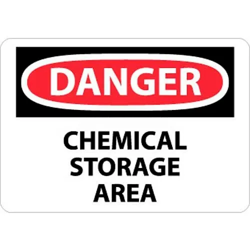 NMC D239RB OSHA Sign, Danger Chemical Storage Area, 10" X 14", White/Red/Black