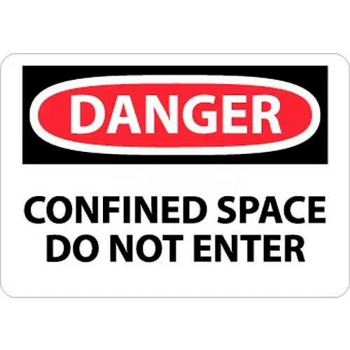 NMC D383P OSHA Sign, Danger Confined Space Do Not Enter, 7" X 10", White/Red/Black