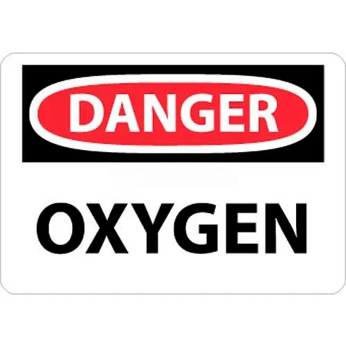 NMC D98R OSHA Sign, Danger Oxygen, 7" X 10", White/Red/Black