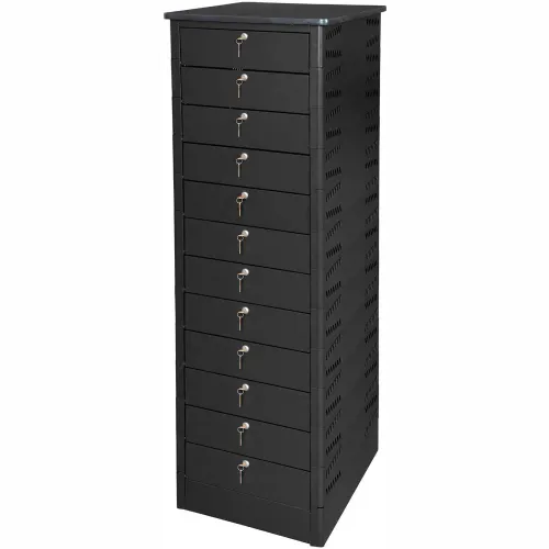 Datum TekStak Laptop Storage Locker with Laminate Top, 12 Bays, Key Lock, Black