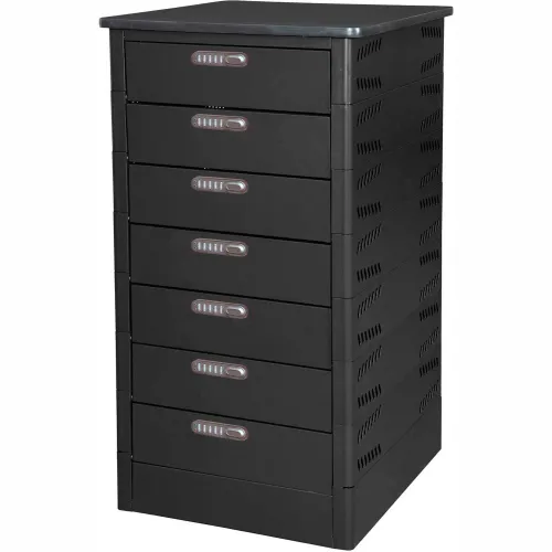 Datum TekStak Laptop Storage Locker with Laminate Top, 7 Bays, Electronic Lock, Black