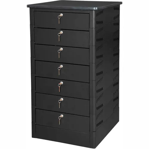 Datum TekStak Laptop Storage Locker with Laminate Top, 7 Bays, Key Lock, Black