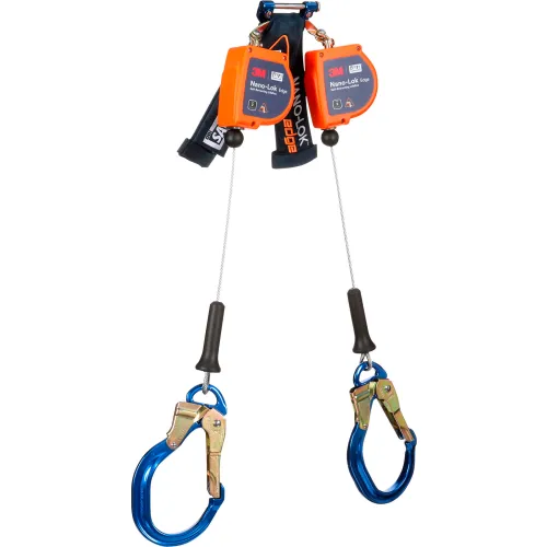 3M DBI-SALA Nano-Lok Edge Twin-Leg Personal Self Retracting Lifeline, Aluminum Rebar Lock Hook 8'L