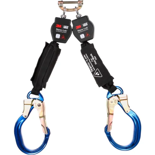 3M DBI-SALA Nano-Lok Twin-Leg Hot Work Self-Retracting Lifeline, Web & Aluminum Rebar Lock Hook, 6'L
