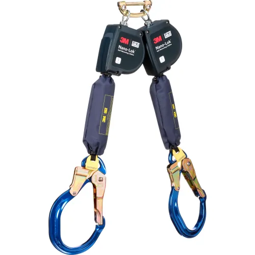 3M Dbi-Sala Nano-Lok XL Twin-Leg Self Retracting Lifeline w/Aluminum Rebar Lock Hook, 9'L