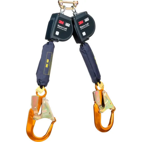 3M Dbi-Sala Nano-Lok XL Twin-Leg Self Retracting Lifeline w/Quick Connect & Rebar Hook, 9'L