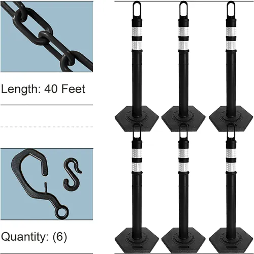 Mr. Chain Delineator & Chain Kit, 2" x 40'L Chain, Hexagonal Base, Black, Pack of 6