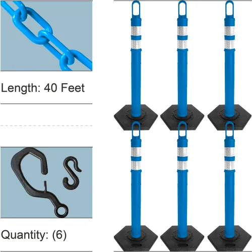 Mr. Chain® Delineator Kits with Plastic Chain, 2" x 40'L, Hexagonal Base, Sky Blue, Pack of 6